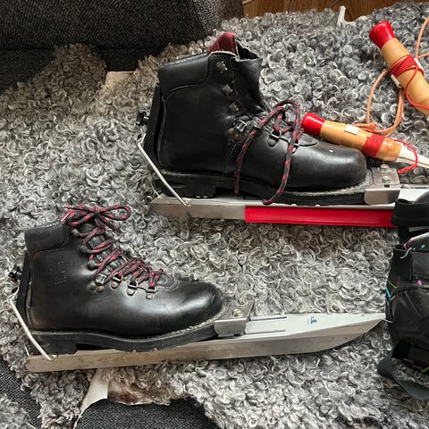 Långfärdsskridskor: Lundhags 50 cm med ”klick-in-bindning” (kanske den bästa skridskon s ii Lundhags gjort) stadiga, utan remmar och lätta att ta av och på i jättebra skick