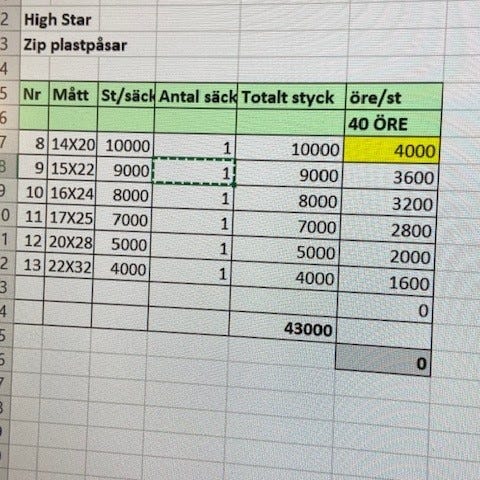 200 plastfickor/bälgficka.