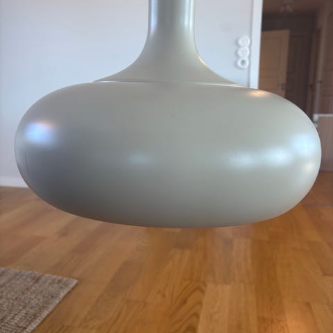 Ikea taklampa i begie. Perfekt att tex ha i köket. Inköpt på ikea 2023. Finns ett litet mörkt mäke i skärmen, men knapp märkbart