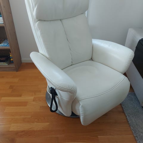 Beige Jetson läderfåtölj med Swedese fotpall (Pall i bra skick) säljes. Slitage på armstöd samt muttrar till armstöd saknas (finns att köpa på nätet).