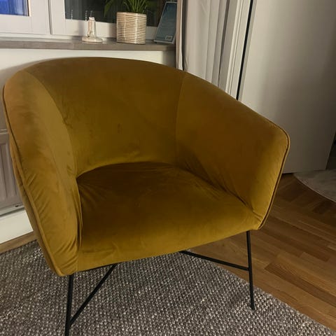 Mått: bredd ca 73 cm, höjd ca 80 cm, djup ca 73 cm. Sittdjup ca 51 cm och sitthöjd ca 44 cm. Passar som sittplats i vardagsrum, sovrum eller hall.