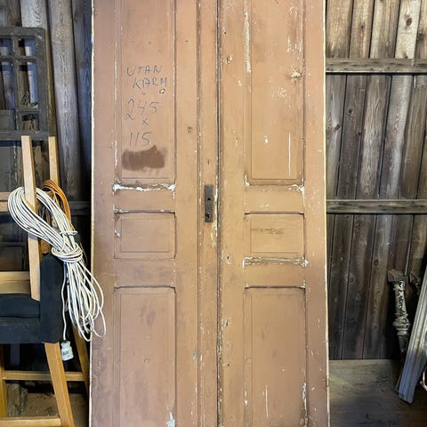 Vit innerdörr med spröjsat glasparti i övre delen och slät nedre del. Dörren har flera glasrutor avskilda med spröjs och är lämplig för inomhusbruk, exempelvis mellan rum där man vill släppa in ljus men ändå ha en avskiljande dörr. Passar i miljöer med klassisk eller äldre stil. Exakta mått och hängning behöver kontrolleras vid montering. Ca232cmx91cm