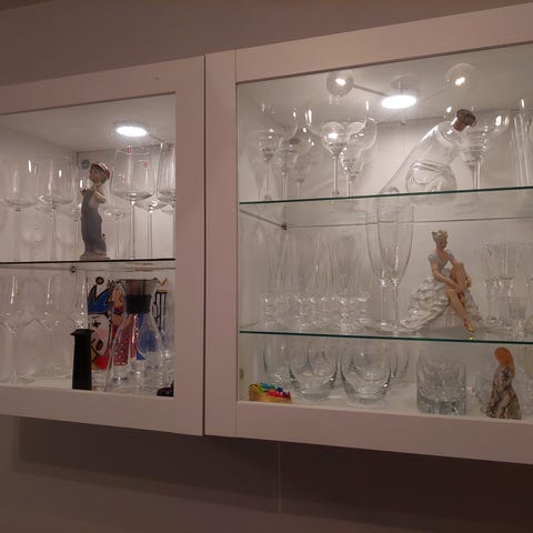 Kvalitetsskåp från Smålandsinredningar , belysning samt förvaring .