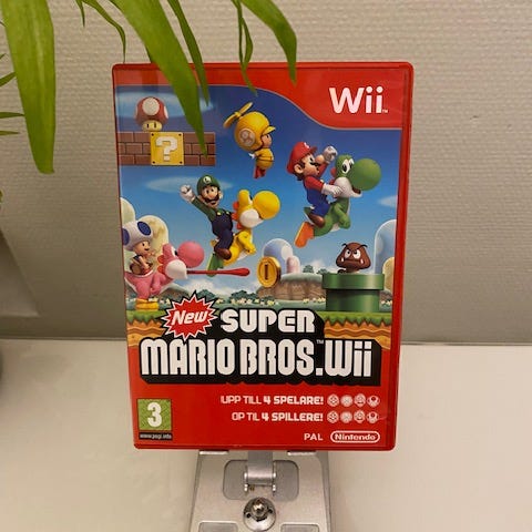 Flerspelarläge upp till fyra spelare lokalt. Genre: plattformsspel i Super Mario-serien. Spelet är avsett för Nintendo Wii-konsol och är i mycket bra skick i originalfodral med manual.
