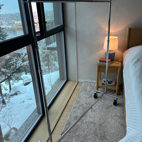 Tre stycken arkitektritade klädställningar i plexiglas och borstad stål.