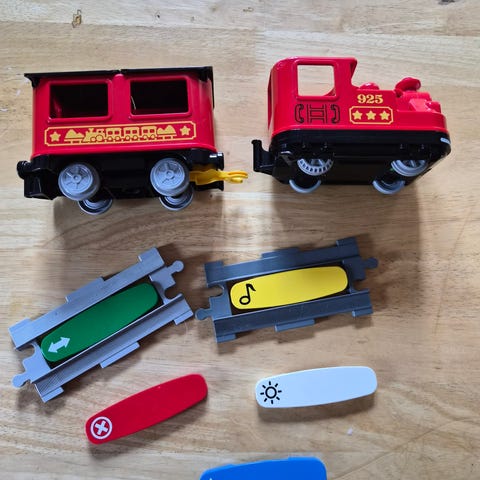 16 st spårdelar varav 12 st kurvor och 2 st raka skenor och 1 bro.