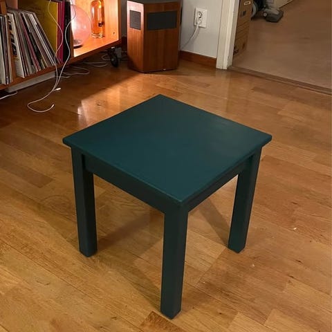 Litet bord som min syster har målat och dekorerat men används inte ännu mer och tar tyvärr endast plats. Väldigt lätt och liten men perfekt om man vill måla om och ge nytt liv till den
