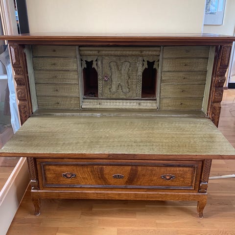 Sekretär träbyrå med lådor och hyllfack