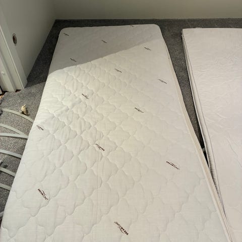 En blårutig madrass med tillhörande bäddmadrass i mycket hög kvalitet säljes.