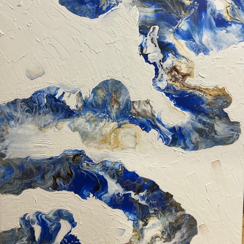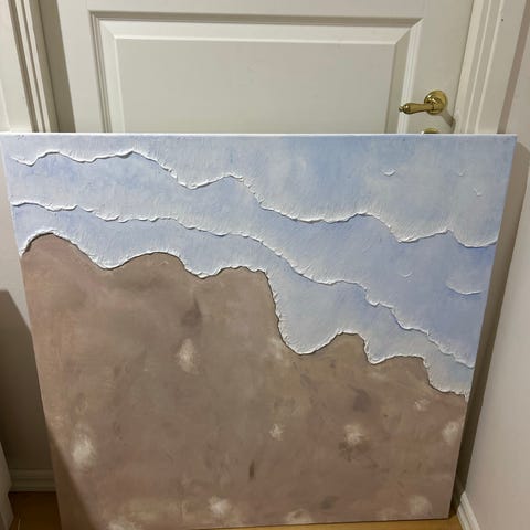 Abstrakt tavla strukturmålning beige och vit
