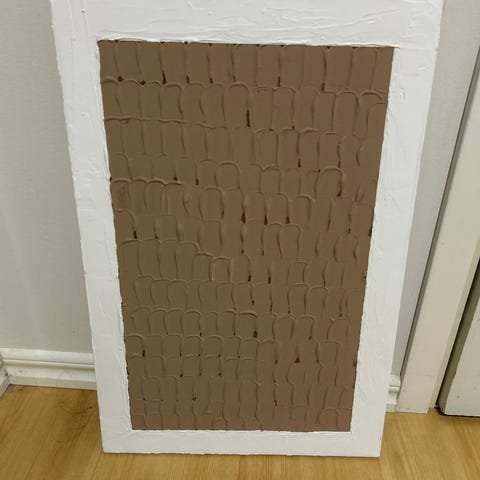 Tavla med abstrakt strandmotiv i blå och beige färger. Motivet föreställer en stiliserad strandlinje med struktur i färgen som ger en upphöjd effekt. Passar som väggdekoration i exempelvis vardagsrum, sovrum eller hall. Målad på duk uppspänd på kilram.