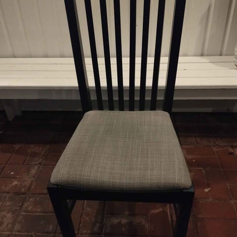 IKEA stol i trä med mörkbrun stomme. Med ryggen är den 90 cm hög. Det finns 6 stycken stolar.säljes pga flytt.