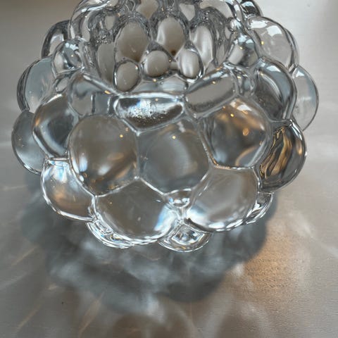 Vas i bubbligt mönstrat glas i rosa ton. Passar för snittblommor, torkade blommor eller som dekorativ inredningsdetalj. Vasen har rundad form med strukturerad yta som ger ett tydligt uttryck på bord, hylla eller fönsterbräda.