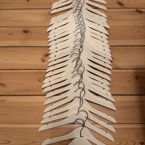 IKEA galgar i trä i vit färg. Mindre modell. Passar barn/ungdomsplagg.