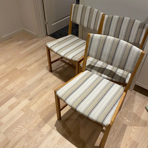 Skänkes mot upphämtning, en stol ser lite tråkig ut och det är en liten reva i bordskivan, men annars fullt fungerande