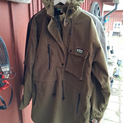 Ridgeline anorak/smock med huva i grön färg, storlek M. Modellen har halvlång dragkedja framtill, känguruficka med ficklock samt två sidofickor. Justerbar dragsko i midjan och huva med snörning.