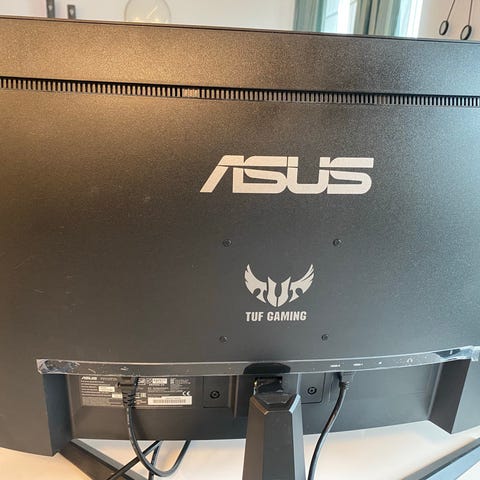 Mission SG EM32SM40FH0 bildskärm med 32 tum skärmstorlek i svart utförande. Skärmen har böjd design och står på ett trebent stativ. På baksidan finns anslutningar och reglage samlade vid stativfästet. Passar för användning med stationär dator, exempelvis för kontorsarbete, spel eller filmvisning. Modellen är märkt Mission SG EM32SM40FH0 enligt etiketten på baksidan.