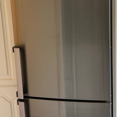 Samsung RR39M7455SA kylskåp i rostfritt stål. Endast använt ett år, säljes pga av flytt. Finns en liten buckla på sidan men syns inte när man har det infällt.