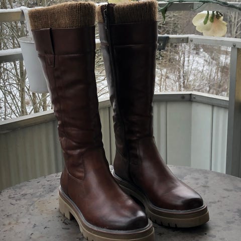 COS stövlar i svart färg, storlek 37. Modellen har snörning framtill och kraftig sula. Passar som vardagsstövlar under svalare årstider.