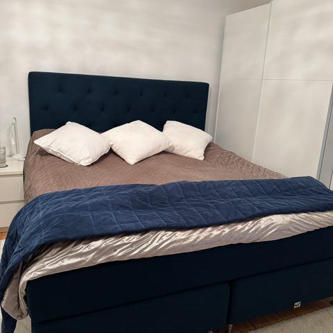 Inköptes 2023 för 30.000kr inklusive sänggavel och exklusiva träben från samma märke och köptes i den välrenommerade butiken Elgen i centrala Stockholm.