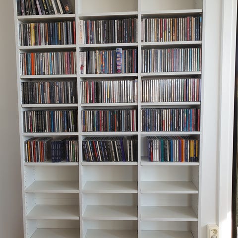 Cd-hylla med glasdörr i grått utförande. Hyllan har flera fasta hyllplan anpassade för förvaring av cd-skivor. Glasdörren skyddar innehållet mot damm samtidigt som det är lätt att överblicka skivorna. Passar för förvaring av cd-skivor i vardagsrum, arbetsrum eller mediehörna.24×22×104cm.Rymmer c:a 100 skivor.