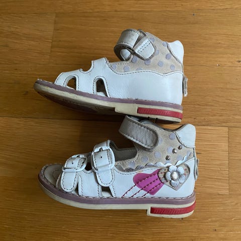 Handgjorda lädersandaler i storlek 27 brun med blommotiv