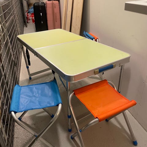Har synliga spår av användning. Kommer med ett överdrag till bordet, behöver tvättas.