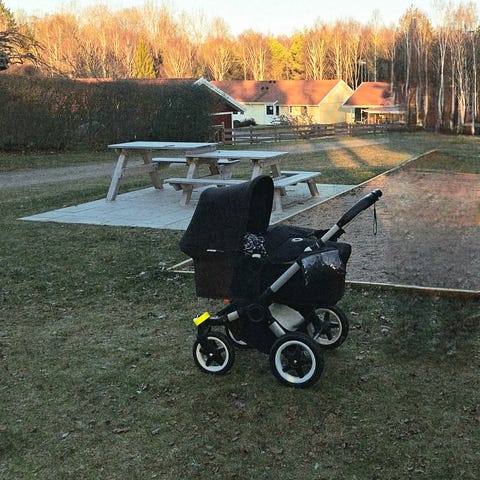 Hösten 2025 köpte jag nya punkteringsfria däck för 1960kr samt en adapter till babyskydd för 830kr, adaptern passar babyskydd modellerna som står på bilden och kan skickas med vid intresse.