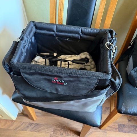Nobby transportväska för smådjur i svart tygmaterial med ljus kant. Väskan har nätpaneler för ventilation och insyn, samt öppning framtill som kan stängas med dragkedja. Invändigt finns ett fäste för sele eller koppel. Utsidan har en ficka för mindre tillbehör. Lämplig för transport av mindre husdjur som katt eller liten hund ca 10 kg exempelvis vid bilresa eller kortare resor.