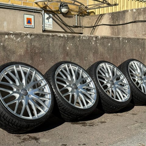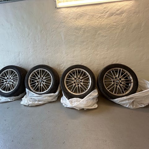 Fälgarna är i väldigt bra skick ingen kantstöttning och däcken är i nyskick har 7mm kvar. Priset är 8500kr för alla fyra hjul.