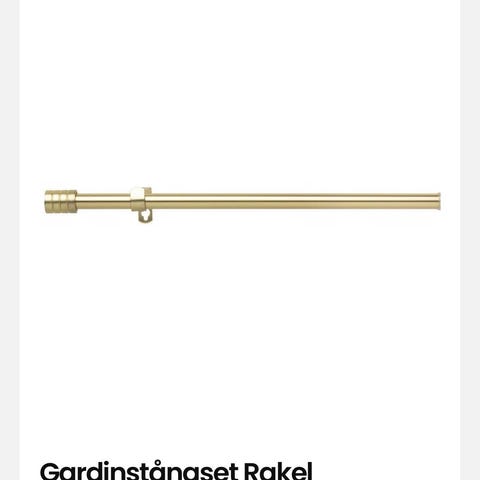 Gardinstång i metall med kopparfärgad yta. Stången har dekorativ, genombruten ändknopp i ena änden och väggfästen för montering ovanför fönster.