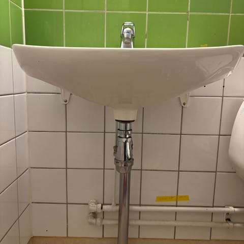 Gustavsberg toalettstol i vit porslin, golvstående modell med synlig cistern och toppmonterad spolknapp (fungerar men bör bytas) Toaletten har traditionell utformning med oval sits och infästning i golvet framtill. Anslutning för vatten sker upptill på cisternen. Passar för installation i badrum eller toalettutrymme där en klassisk golvstående WC önskas.