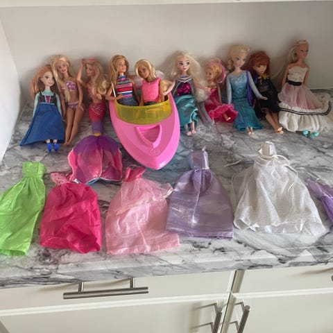 Olika dockor med extra kläder. Mycket bra skick. 500kr för allting.