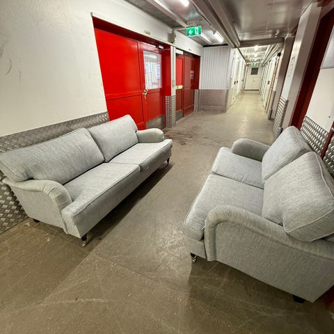 Två stycken gråa 2-sits soffor modell Howard säljes. 1500:- för båda sofforna.