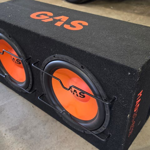 Baslåda från Gas samt slutsteg från Gas. Ett av de sjukaste basen jag upplevt. Kablar för ström följer med. Köptes september 2025.