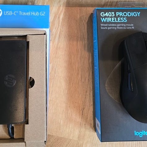 Trådlös räckvidd upp till ca 15 m, med inbyggd laserpekare och USB-mottagare.