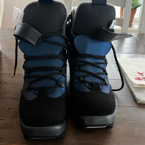 Pjäxornas storlek är 40, mått på innersulan är ca 25,5 cm. Pjäxorna är inte mycket använda och skenorna så gott som nya. Nyslipade och vassa.
