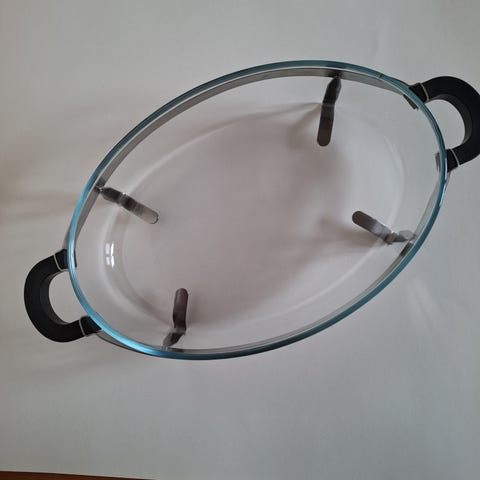 Rektangulär ugnsform i genomskinligt glas . Formen har handtag på kortsidorna för enklare hantering. Passar för tillagning av exempelvis gratänger, lasagne och andra ugnsrätter. Kan även användas för servering direkt på bordet. Exakta mått och volym är inte angivna.