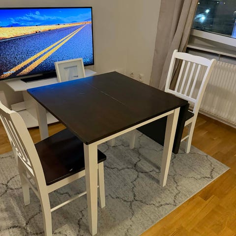 Säljer matbord och två stolar, perfekt för en liten lägenhet, köpt från IKEA