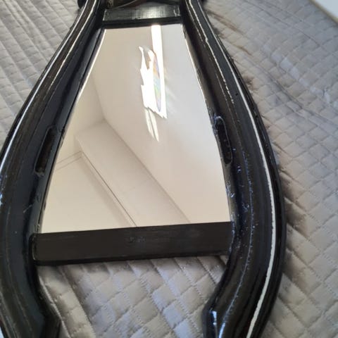 Omgjort gammalt stallfönster med speglar. Gediget i järn. Mått 75 ×45