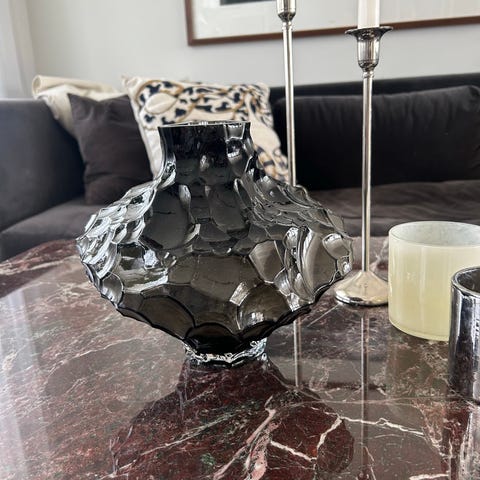 Säljer min fina vas från Firma Svenskt Tenn i blått glas med texturerad yta i form av koraller. Finns inte längre i deras sortiment.