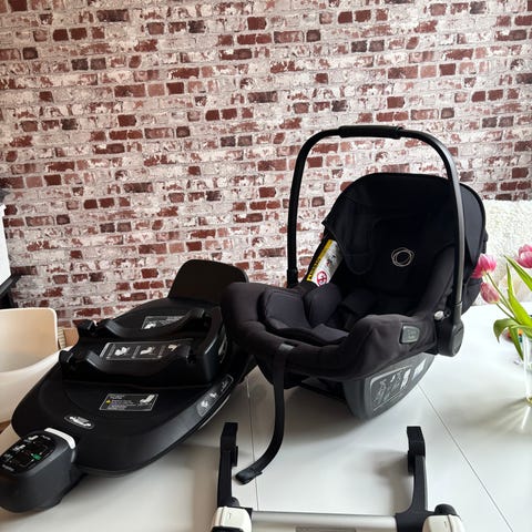 Isofixbilbarnstol: använd varsamt. Har även spädbarn skydd.