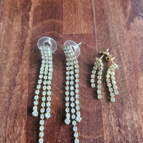 Pilgrim smyckeset för kvinna i guldpläterat material med kristalldetaljer. Setet består av ett par örhängen med droppformade hängen samt ett matchande halsband med kedja och avlångt hänge dekorerat med kristaller. Smyckena har en varm guldfärgad ton och är märkta med Pilgrim-logotyp. Passar som accessoar till både vardag och mer uppklädda tillfällen.