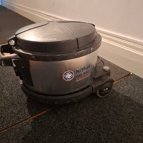 Carpet Cleaner mattvätt för rengöring av mattor och textilgolv. Maskinen levereras i originalkartong med slang och tillbehör enligt bilder. Cylindrisk konstruktion med hjul för enkel förflyttning. Avsedd för våtrengöring av mattor i hem- eller företagsmiljö.