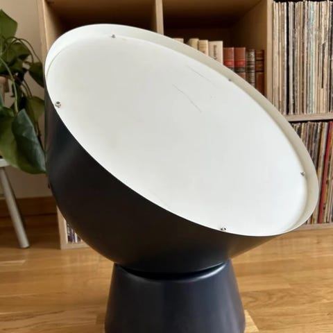 Flos bordslampa i vit färg. Lampan är formgiven av Achille Castiglioni. Överkupan är skålformad och vilande på en cylindrisk svart fot. Passar som belysning på bord, hylla eller skänk i hemmiljö eller kontor.