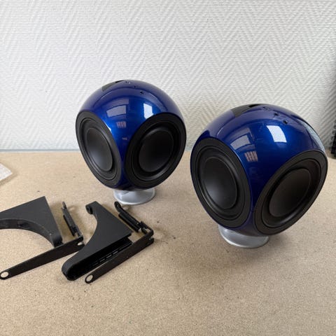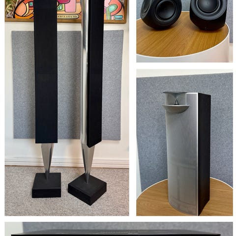 Bang Olufsen Beolab 4000 - Silver, aktiv högtalare med innovativ design och avancerad teknik. Dessa kompakta högtalare kan placerats i en bokhylla eller hängas på väggen i vilken vinkel som helst, även i taket. De har ett kabinetts helt i aluminium för ett stilrent och robust utseende.