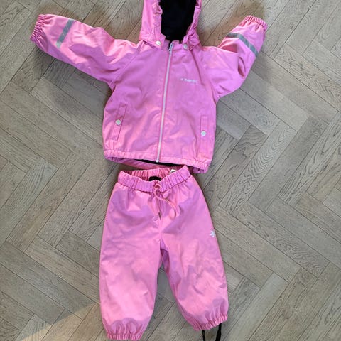 Rosa regnställ, fodrat, med reflexer på samt nya fothällor!