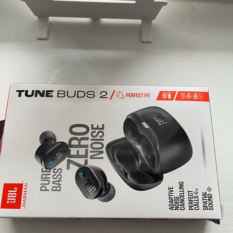 JBL Tune trådlösa in-ear hörlurar i svart färg med laddningsetui. Hörlurarna är helt trådlösa och förvaras samt laddas i det medföljande etuiet. Passar för vardagslyssning, pendling och träning där kompakt storlek och sladdfri användning önskas.