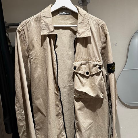 Säljer en klassisk Stone Island sweatshirt i beige färg med ikonisk badge på ärmen.