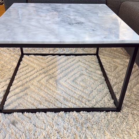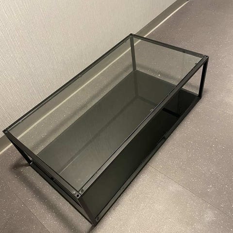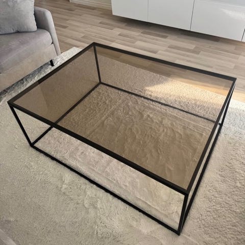 Snyggt bord med två skivor i glas & svart metallram. Bordet är i använt skick och har lite märken & repor men fullt funktionellt & fortfarande väldigt snyggt!